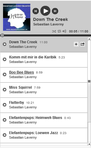 Im CD-Shop finden Sie aktuell erhältliche Aufnahmen von Sebastian Laverny. Auf Wunsch ist das Musik-Buch "Der Elefantenpups. Ein tierischer Geheimplan" auch mit persönlicher Widmung des Komponisten erhältlich. Eine CD des Sebastian Laverny Quartetts ist in Planung, bis zum Erscheinen müssen Sie sich leider noch etwas gedulden. Bis dahin genießen Sie das Sebastian Laverny Quartett auf Youtube oder Myspace - oder am besten live bei einem seiner Konzerte.